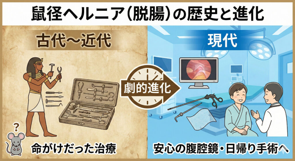 鼠径ヘルニア(脱腸)の歴史と由来~古代から現代の腹腔鏡手術まで~